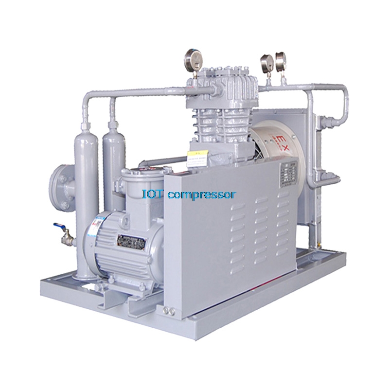 伴生氣壓縮機(jī)壓縮機(jī)是我公司新型產(chǎn)品,它集壓縮機(jī)、進(jìn)口過濾器、氣液分離器、安全閥冷卻器、電動(dòng)機(jī)等為一體,成一完整的機(jī)組。具有功能多、體積小、重量輕、功率小、運(yùn)行平穩(wěn)可靠等特點(diǎn),并有良好的安全性能。它為輸送伴生氣氣,可為用戶最大限度地創(chuàng)造經(jīng)濟(jì)效益。由于采用獨(dú)特的無油潤(rùn)滑設(shè)計(jì),氣缸內(nèi)無需用油潤(rùn)滑,因而不會(huì)對(duì)介質(zhì)造成污染,使被輸送物質(zhì)保持純凈。本機(jī)設(shè)計(jì)成機(jī)組型式,許多管線上的附件都安裝在機(jī)組上,省卻了氣液分離器、穩(wěn)壓罐、安全閥、進(jìn)氣過濾器等,減小了機(jī)房的面積,減少了操作維護(hù)工作量,節(jié)省了投資。