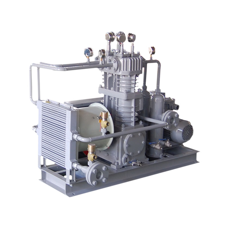 環(huán)氧乙烷壓縮機是我公司新型產(chǎn)品,它集壓縮機、氣液分離器、安全閥冷卻器、電動機等為一體,成一完整的機組。具有功能多、體積小、重量輕、功率小、運行平穩(wěn)可靠等特點,并有良好的安全性能。由于采用獨特的無油潤滑設(shè)計,氣缸內(nèi)無需用油潤滑,因而不會對介質(zhì)造成污染,使被輸送物質(zhì)保持純凈。本機設(shè)計成機組型式,許多管線上的附件都安裝在機組上,省卻了氣液分離器、穩(wěn)壓罐、安全閥、進(jìn)氣過濾器等,減小了機房的面積,減少了操作維護(hù)工作量,節(jié)省了投資。