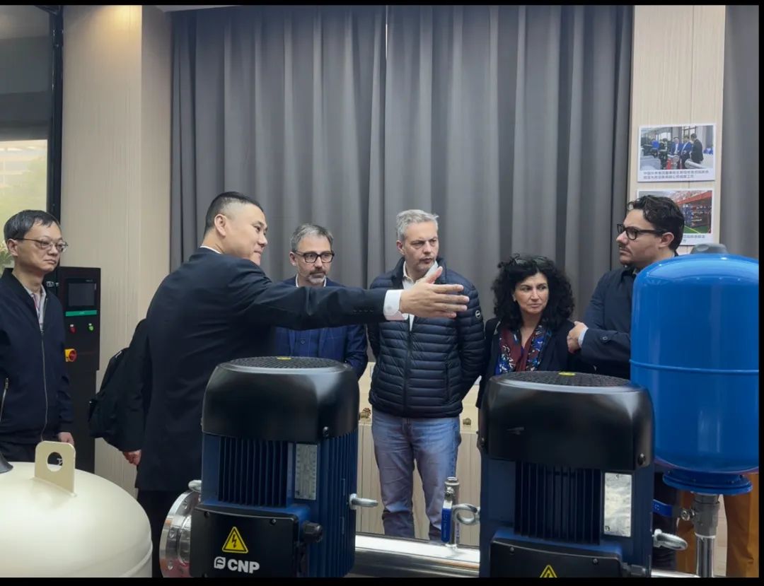 市長(zhǎng)斯蒂凡諾先生一行先后參觀我司的展廳、二次供水設(shè)備生產(chǎn)車間,了解二次供水設(shè)備的運(yùn)用領(lǐng)域及生產(chǎn)工藝,在總經(jīng)理陳科宇的介紹下,市長(zhǎng)斯蒂凡諾先生一行對(duì)二供產(chǎn)品精細(xì)化的生產(chǎn)工藝為之贊嘆,同時(shí)也對(duì)我司生產(chǎn)車間的環(huán)境管理進(jìn)行夸贊。