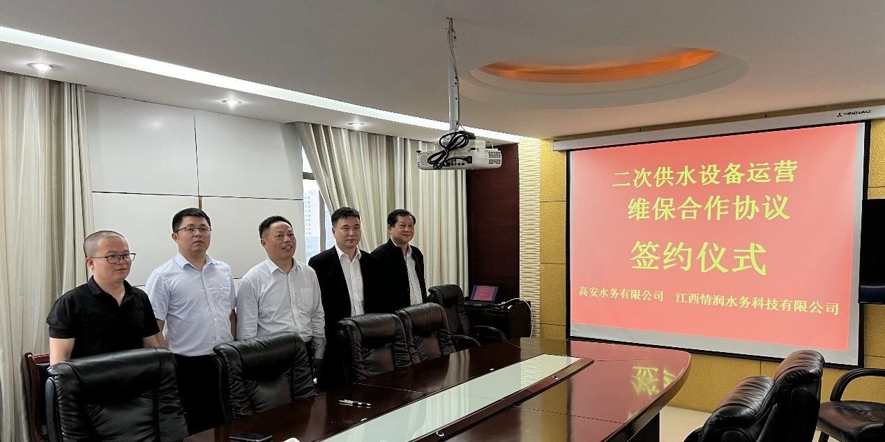 2023年4月18日,二次供水設(shè)備運營維保合作項目在高安水務(wù)有限公司成功簽約。我司子公司江西情潤水務(wù)科技有限公司與高安水務(wù)有限公司簽訂了為期10年的二次供水設(shè)備運營維保合作協(xié)議,成為情潤水務(wù)在二供運維行業(yè)領(lǐng)域新的里程碑。高安水務(wù)總經(jīng)理羅四平、常務(wù)副總胡曉東、我司執(zhí)行總經(jīng)理兼情潤水務(wù)總經(jīng)理何輝及雙方公司相關(guān)人員出席了簽約儀式。