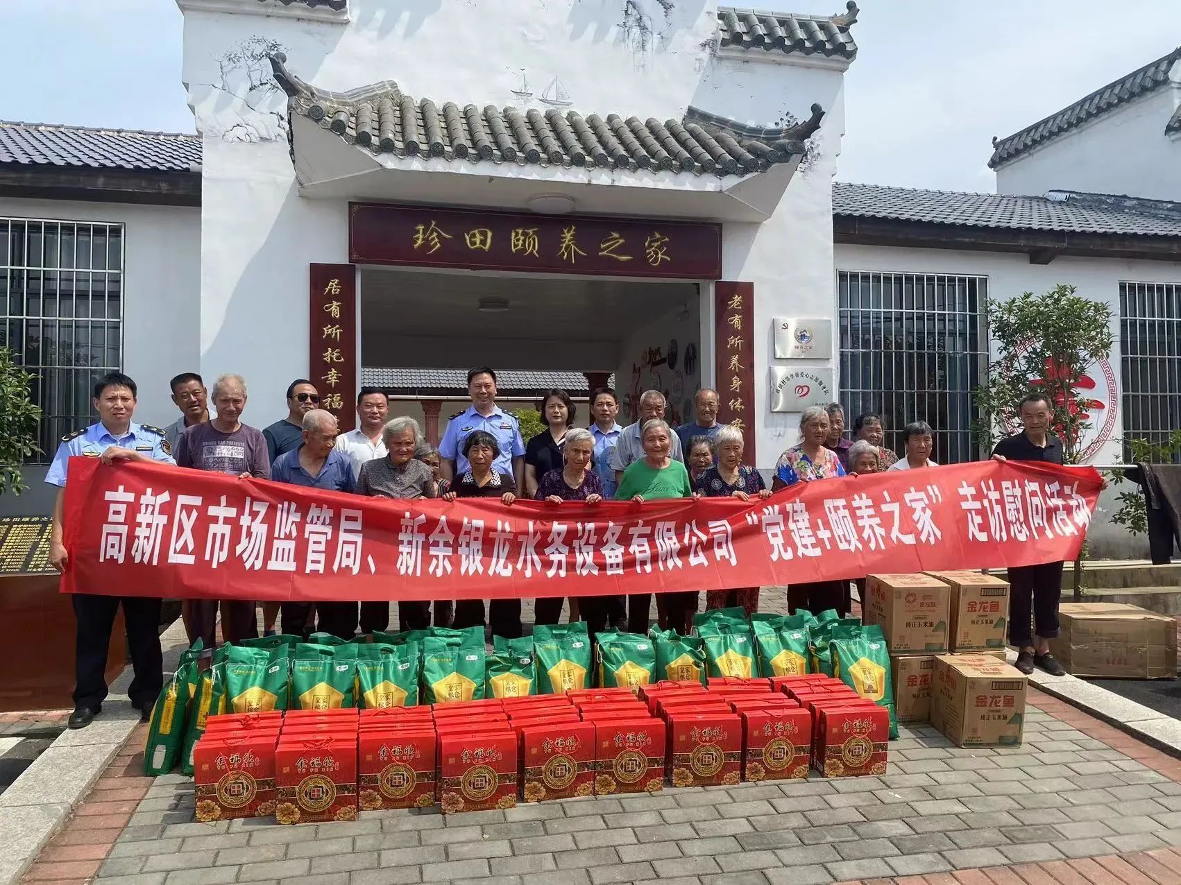 秋高氣爽,桂花飄香,在佳節(jié)來臨之際,高新區(qū)市場監(jiān)督管理局劉局、汪局等領(lǐng)導(dǎo)與新余銀龍水務(wù)設(shè)備有限公司副總經(jīng)理李軍華到水西鎮(zhèn)珍田村“頤養(yǎng)之家”進行扶貧走訪活動。給“頤養(yǎng)之家”的老人們送上米,油,月餅等慰問品;并通過村委向頤養(yǎng)之家捐贈愛心扶貧款。