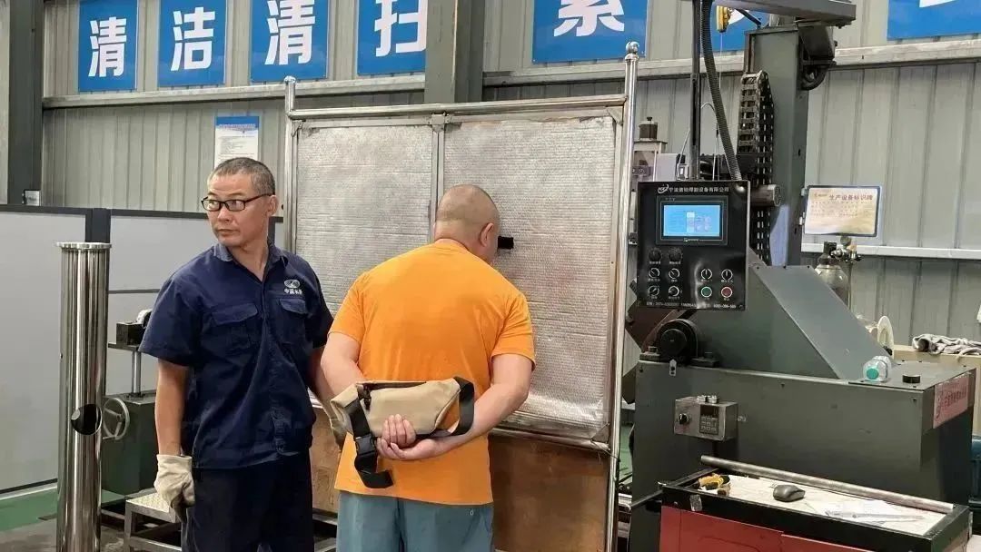 李偉總感受自動焊接機。