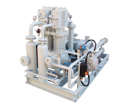 氫氣壓縮機(jī)壓縮機(jī)是我公司新型產(chǎn)品,它集壓縮機(jī)、氣液分離器、安全閥冷卻器、電動(dòng)機(jī)等為一體,成一完整的機(jī)組。具有功能多、體積小、重量輕、功率小、運(yùn)行平穩(wěn)可靠等特點(diǎn),并有良好的安全性能。它為輸送氫氣,可為用戶最大限度地創(chuàng)造經(jīng)濟(jì)效益。由于采用獨(dú)特的無油潤滑設(shè)計(jì),氣缸內(nèi)無需用油潤滑,因而不會(huì)對介質(zhì)造成污染,使被輸送物質(zhì)保持純凈。本機(jī)設(shè)計(jì)成機(jī)組型式,許多管線上的附件都安裝在機(jī)組上,省卻了氣液分離器、穩(wěn)壓罐、安全閥、進(jìn)氣過濾器等,減小了機(jī)房的面積,減少了操作維護(hù)工作量,節(jié)省了投資。